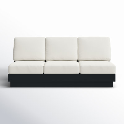 Enhance your outdoor living experience with our patio sofa. Engineered for lasting durability, the aluminum frames of this patio sofa are rust-free, ensuring performance and protection against the elements. The clean metal look introduces a touch of elegance to your outdoor space, while also providing exceptional durability. The patio sofa comes with Sunbrella performance cushions while offering a cozy seating experience. The black finish imparts a sleek and modern touch to the overall design. Best of all, the sofa comes fully assembled to enjoy immediately. AllModern