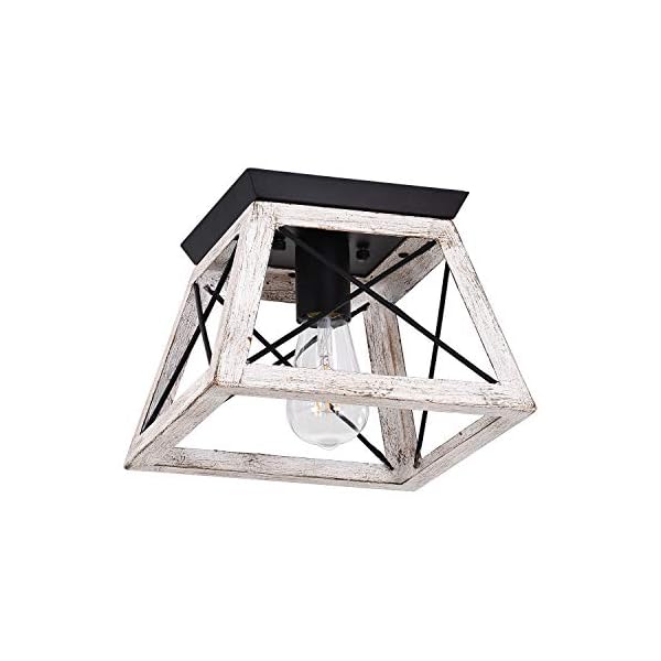 Luupyia Farmhouse Ceiling Light Fixture Flush Mount, One-Light Square Farmhouse Chandelier Lighting, Rustic Island Light Fixtures for Dining Room, Entryway and Living Room Beige