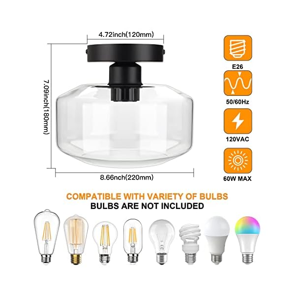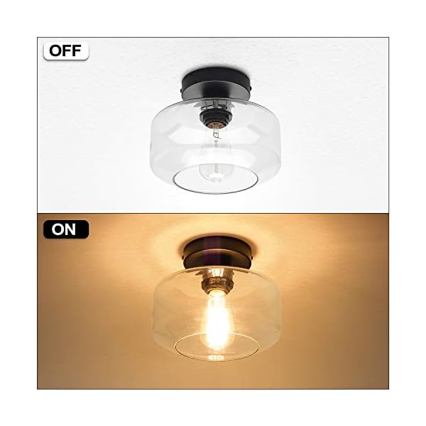 MAXvolador Industrial Semi Flush Mount Ceiling Light, Clear Glass Pendant Lamp Shade, Farmhouse Lighting for Porch Hallway Kitchen Bedroom, Vintage Hanging Light Fixtures, Bulb Not Included