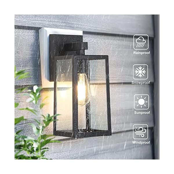 MAXvolador Outdoor Wall Lantern, Exterior Waterproof Wall Sconce Light Fixture, Matte Black Anti-Rust Wall Mount Light with Clear Glass Shade, E26 Socket Wall Lamp for Porch(Bulb Not Included)