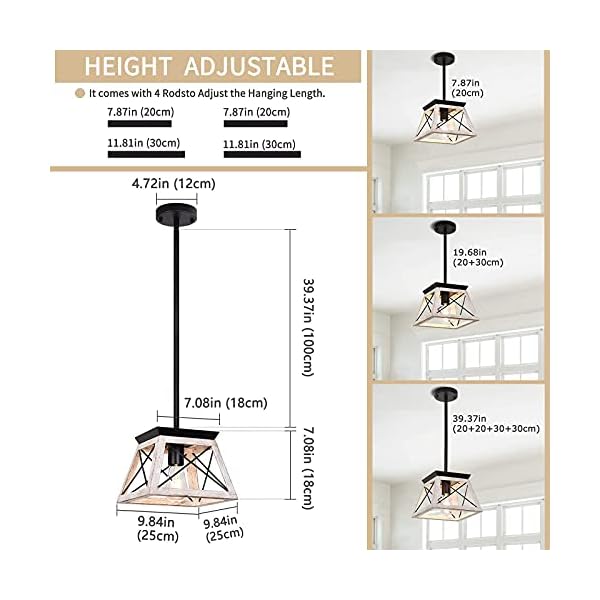 【Wide Application】- This Rustic hanging Light is completely hand-painted, distressed wood grain finished matches matte black Bring a vintage elegance with a new style to your kitchen island, living room, dining room, entryway, corridor, hallway, foyer, etc.