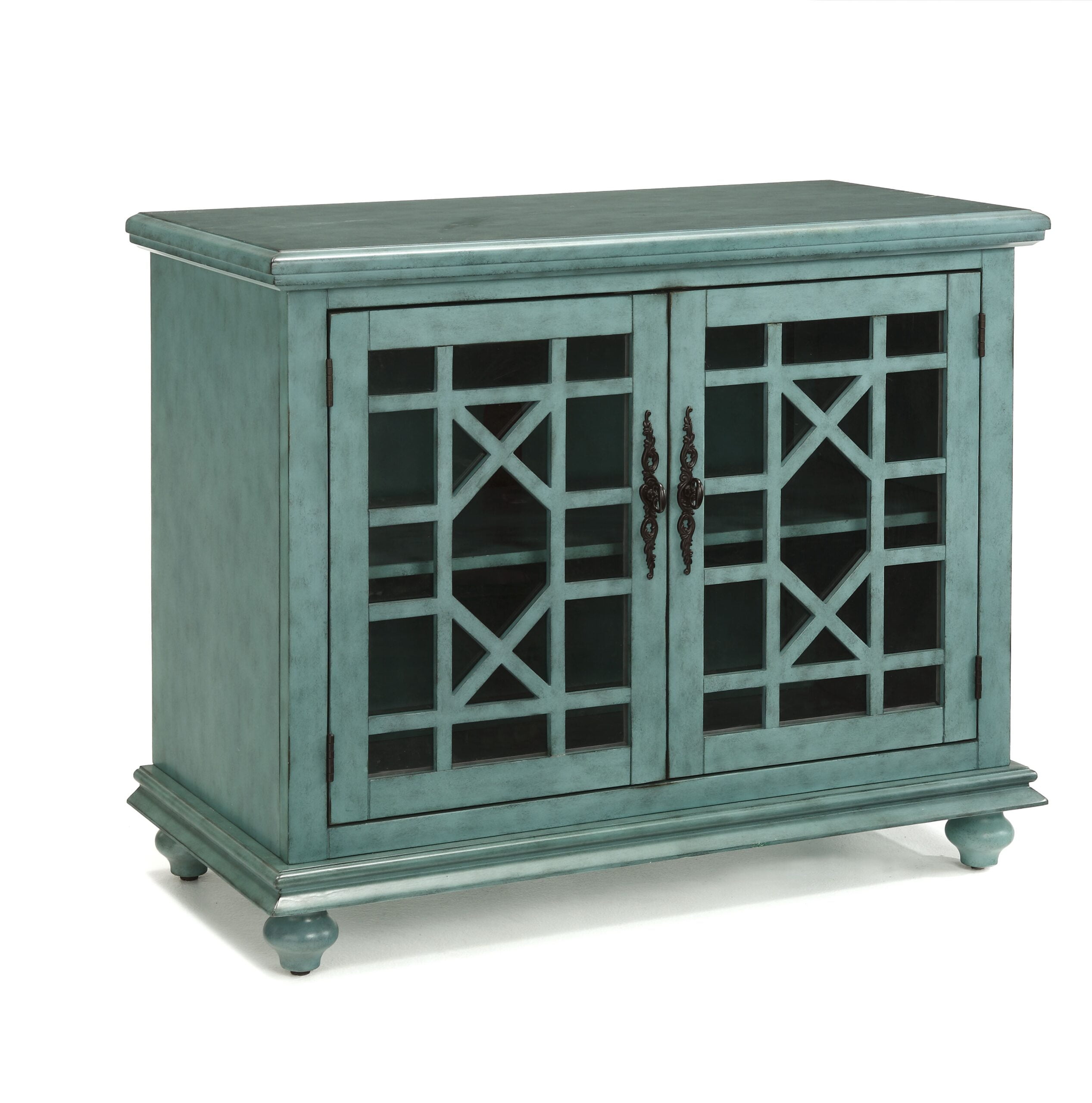 If keeping your home tidy feels like an uphill battle, call in reinforcements with this accent chest. This solid and engineered wood cabinet adds a touch of elegance to your space with accent molding, dovetail joints, and antique-inspired hardware. It sits on four bun feet for a traditional feel, and its shelved storage space sits behind two lattice-designed, tempered glass doors. We love that the back of the cabinet has a cutout for keeping TV and entertainment cords organized. Use this chest as a catch-all in your entryway or to store linens in your hallway.