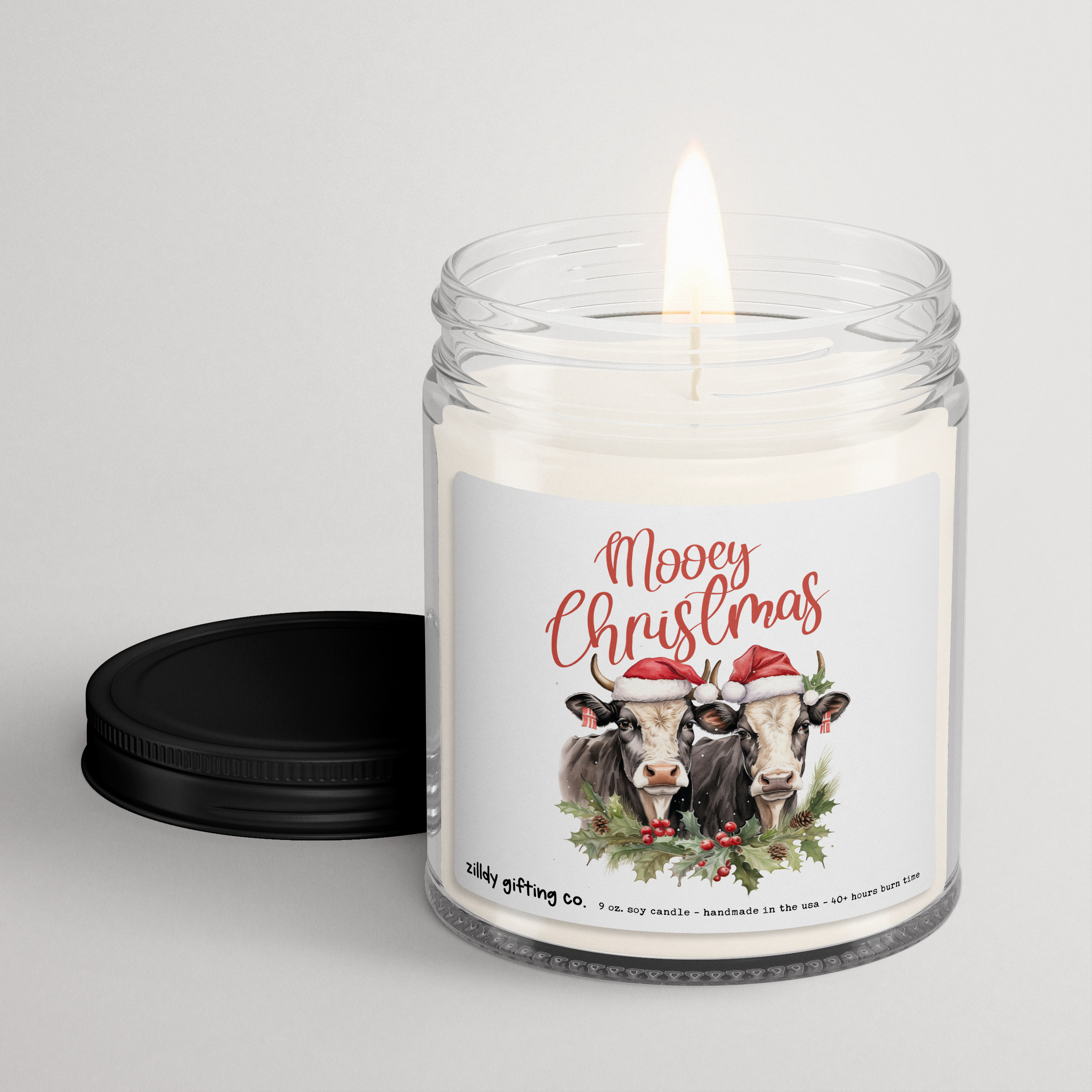 Mooey Christmas with Festive Cows Personalized Soy Candle Gift • Christmas Holidays