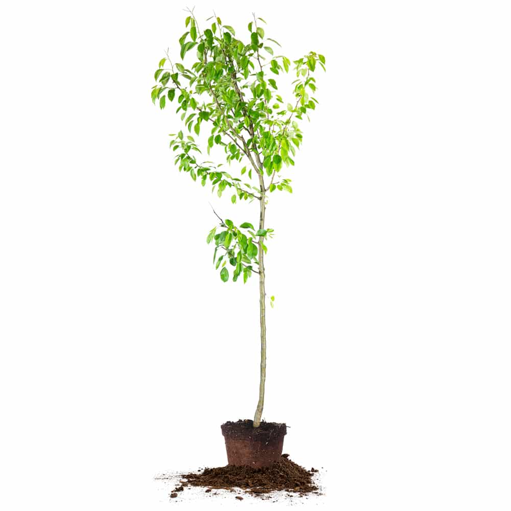 Order Moonglow Pear Tree Online EASY TO GROW PEAR TREE WITH LOADS OF FRUIT Pyrus Communis ‘Moonglow’ aka the Moonglow Pear Tree is the package deal when it comes to fruit trees! With juicy, delectable fruit being produced and low maintenance qualities, you can’t go wrong with a dwarf Moonglow Pear tree. The Moonglow pear fruit has greenish-brown skin that turns blush pink when ripe. It is very similar to a Bartlett Pear and the fruit size is medium to large. A benefit of this fruit is that it is low in acid, and is chocked full of vitamins and nutrients. This European pear variety produces white flowers in mid to late spring and has dark green foliage that will stay on the tree until fall. Being a deciduous tree, it will lose all its leaves over winter but not before putting on a display of fall color when the green leaves turn to yellow. How to Care For Your Moonglow Pear Tree Bought Online This variety of pear tree grows across the United States in USDA hardiness zones 5-9. Moonglow pear chill hours require 500 hours between 32 F and 45 F for fruit set. It is best suited for colder climates but can adapt to many locations. Full sun is required for crop production. Pears like to be planted in slightly acidic soil that is well-draining and rich with nutrients. We recommend fertilizing with a slow-release fertilizer in early spring to help with flower, fruit, and tree growth. Apply a thick 2-inch layer of mulch to the base of the root ball to help provide moisture retention. Be sure to water thoroughly the first year of planting to establish a strong root system. During the active growing season, the fruit tree should get around 1 inch of water per week. Moonglow pear is very resistant to fire blight, as well as other pest and disease issues. The mature size of this pear variety is up to 8-10 feet tall and 5-10 feet wide. Regular pruning performed annually will help to keep this pear fruit tree at a manageable size where fruit can be picked with ease. It has a vigorous growth rate of 1-2 feet per year and an upright growth habit. Prune pear trees in late winter or early spring while still dormant. When to Pick Moonglow Pear? Moonglow pears ripen from August to September depending on your location. You can tell when the fruit is ripe when it gets softer to the touch. Expect the first year to bear fruit to be 2-3 years after planting. They are heavy bearers and will produce fruit for many years. You can let them ripen on the tree or harvest pears before ripening to store for later use. Is Moonglow Pear a Self Pollinating Fruit Tree? Pyrus communis ‘Moonglow’ is not self-fertile and requires another pear tree nearby for cross-pollination. Trees should be planted no more than 50 feet away from each other to cross-pollinate. Bees are the primary pollinators of pear trees and having multiple types of pear trees will increase fruit production. Moonglow variety is a very good variety for pollinating other common pear trees too. What Are the Best Pollinators for Moonglow Pear? Bartlett pear is the #1 choice for pollinators. Other good options include other European pears like Hood Pear or Kieffer Pear. Our Asian Pears can also be good cross-pollination partners as well. Shop the Moonglow Pear Tree for sale for sweet juicy fruit that is grit-free and easy to grow! Note: these trees are not bare-root, they are rooted in a nursery container in soil with a root ball. Check out all our fruit and nut trees for sale.