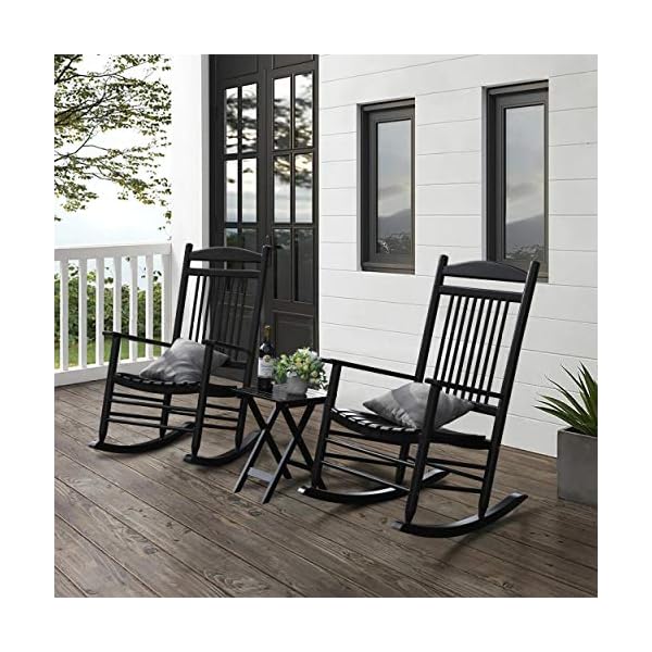 【EASY SETUP & CONVENIENT TO USE】: With a simple and elegant black style, this rocking chair can also be assembled easily and used both out of doors and indoor. This 3-piece rocking chair set comes with two chairs and one foldable coffee table to make it easy so that you can chill out, enjoy and decorate your porch, garden and patio as a combo.