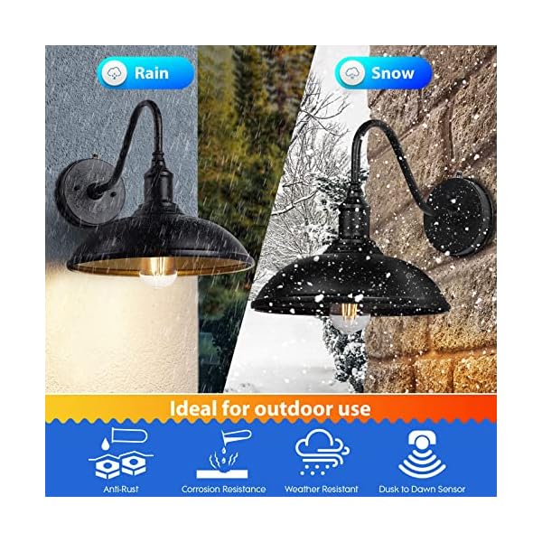 Naurham Dusk to Dawn Exterior Farmhouse Lighting Barn Light Fixture for House with Anti-ponding Bottom, Outdoor Barn Light Gooseneck Lighting for Garage Patio Porch (10.9″ Diameter, 1 PC)