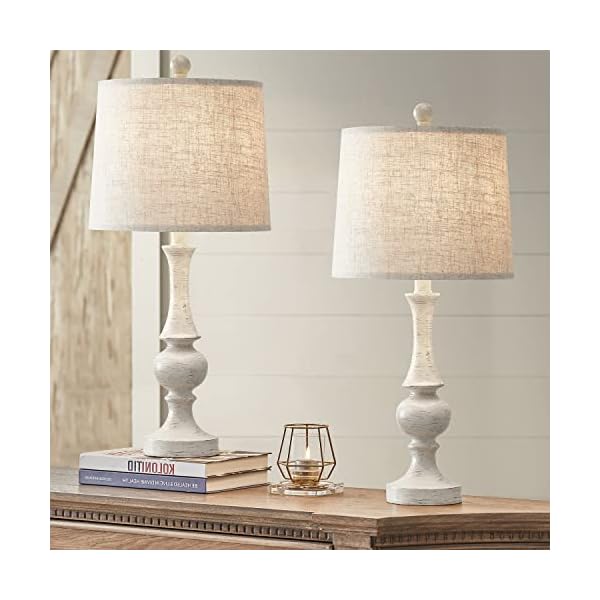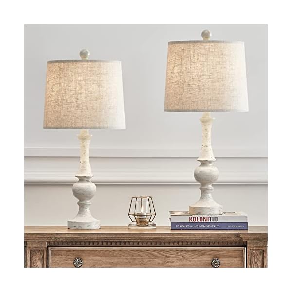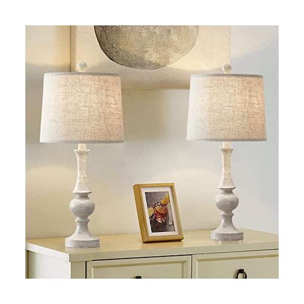 Oneach Farmhouse Table Lamps for Bedroom Living Room Set of 2 White Beside Lamp 24.5” Modern Vintage Night Stand Light Fabric Drum Shade for Office Study Work