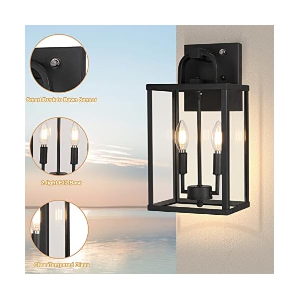 PARTPHONER Large Outdoor Light Fixutre 2-Light, Dusk to Dawn Outdoor Lighting Farmhouse Front Porch Light Exterior Wall Lantern Sconce with Clear Glass for Entryway Doorway House Garage