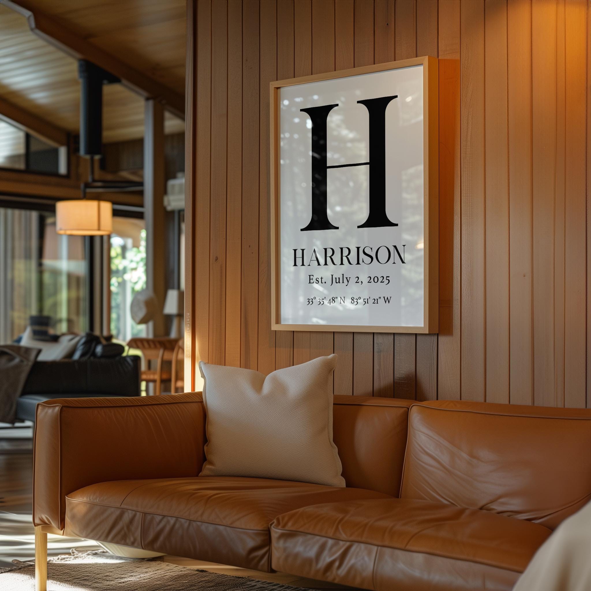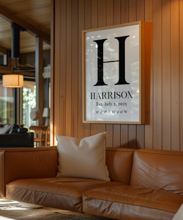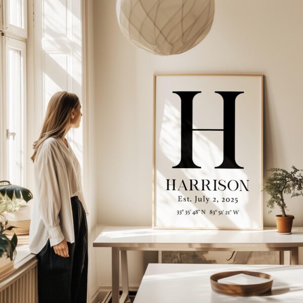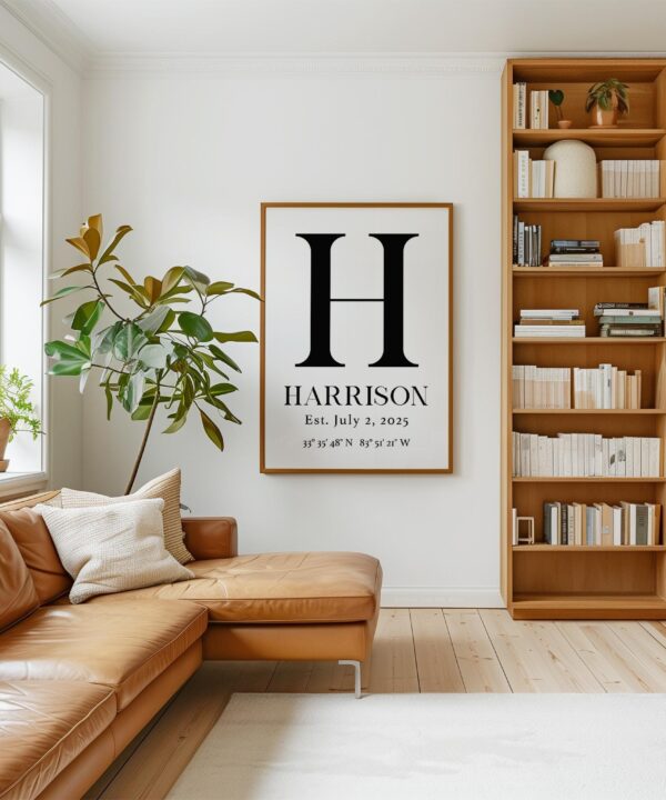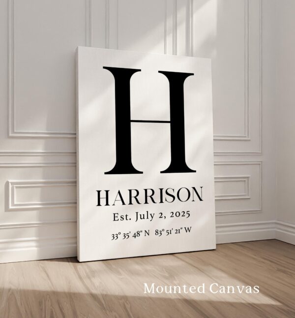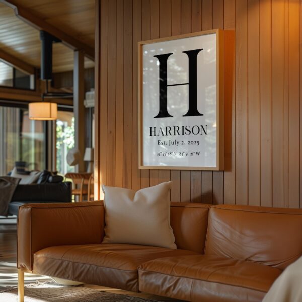 Celebrate the story of your family with this elegant personalized monogram print. Featuring your family’s initial, surname, special establishment date, and the meaningful GPS coordinates of your home or wedding venue, it’s a beautiful daily reminder of where your journey began.