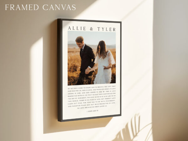 Capture the sacred bond between two hearts with a custom Christian wedding print featuring your own personalized prayer. Personalized with your favorite photo and names, this artwork embodies the joy of love rooted in God’s love.