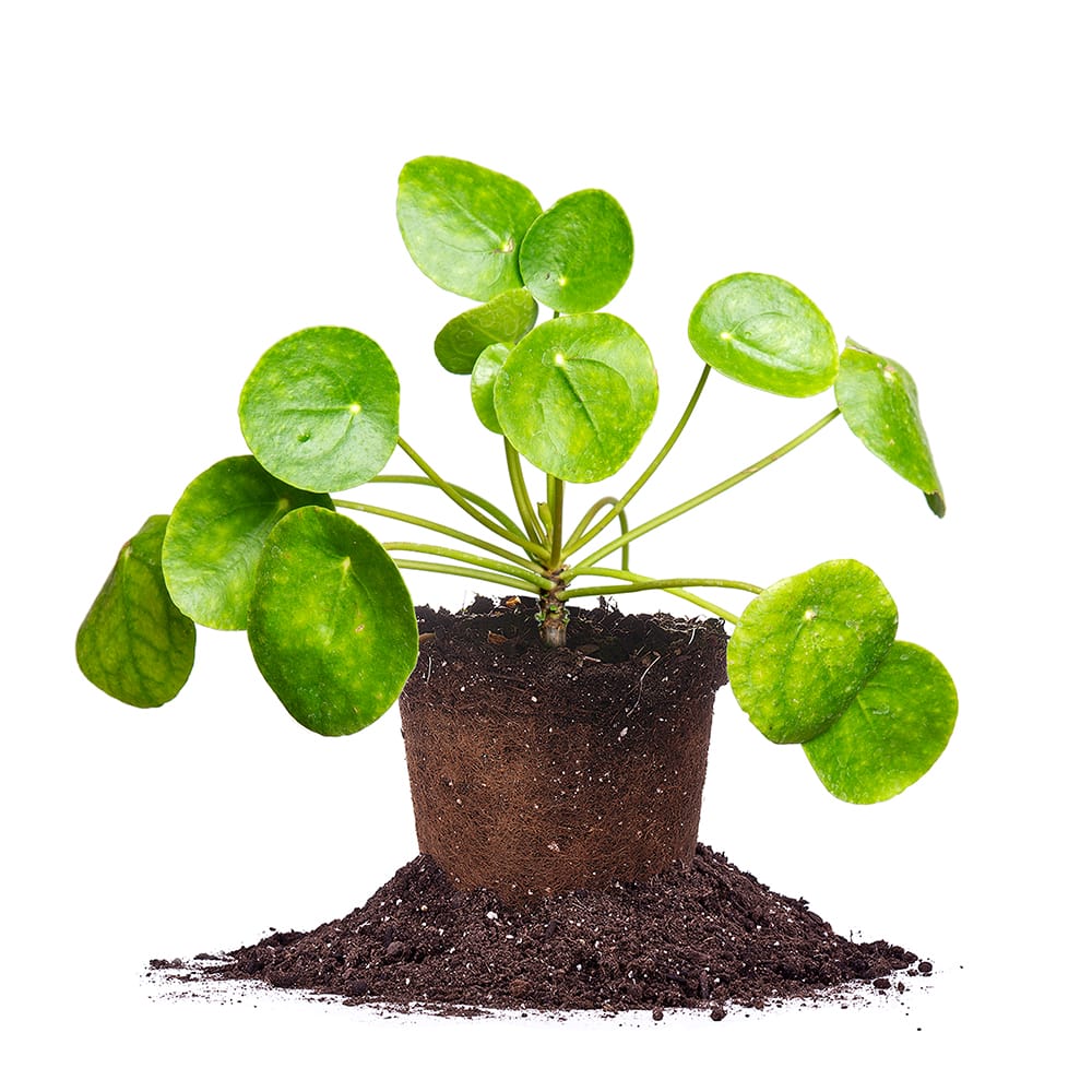 Buy Pilea Peperomioides Online SPECTACULAR INDOOR HOUSE PLANT FOR TROPICAL DECOR Pilea Peperomioides are bright green ornamental houseplants. Also known as the ‘Chinese money plant’, ‘pancake plant’, or UFO plant, this species is native to Southern China in the Yunnan province but has become a very popular houseplant in the United States in the last few years. The Pancake plant features circular foliage that appears in the shape of large silver dollar coins. The coin shaped leaves shoot up on long slender stalks that are almost unseen amongst the bouquet of voluminous petals. It is primarily grown for its unique foliage but it does produce dainty white flowers in the spring. It is not common to see pilea flowering when grown indoors. The Pilea grows vertically making it the perfect accent to a narrow space that receives a lot of bright indirect light. Potted pilea peperomiodes looked beautiful in any room of the house or on a back patio or porch. Add a touch of dark green decor to spruce up your interior decorating. HOW TO CARE FOR PILEA PEPEROMIOIDES Pilea Plants require a common houseplant environment. If you already have a spot dedicated to your indoor plants, provide bright indirect light, water your Pilea on a consistent schedule, apply fertilizer annually, and repot as needed — your Pilea Peperomioides plant will thrive for many years to come! Pilea Light Requirements The Pilea Peperomioides species does best in bright light sources. The Pilea can tolerate a spot that receives full sun for a few hours a day. The more direct sun this tropical houseplant receives, the quicker its soil will dry out. Too much direct light will burn the leaves, so make sure to rotate the pot frequently and choose a spot with protection from the harsh afternoon sun. Pilea Soil Requirements Like most tropical house plants, the Pilea Peperomioide soil should be well-draining and have proper amendments to aid the root system in retaining moisture. Check out our Organic Potting Mix for a specialized formula that will give your Pilea all the vitamins and minerals it needs. Ensure that the bottom of the pot has drainage holes. We recommend a terracotta pot to help with drainage and avoid root rot. Pilea Peperomioides Watering When figuring out your pilea care schedule, allow the top 1-2 inches of the soil to dry out between waterings. Adjust your watering schedule during spring and summer to ensure proper moisture in the hottest months of the year. The same concept can be applied in the winter months. Typically watering is reduced during the winter season as indoor houseplants are not actively growing. How to Prune Pilea Peperomioides Pruning a pilea can be quite simple. It is encouraged to pinch or carefully snip off any dried or yellowing leaves. The best time to prune pilea is in early spring. You can keep any pups that the mother plant produces! The baby Pilea plants are easy to propagate and give away to friends. Just place them in a glass of water and watch roots grow. Buy Pilea Peperomioides for sale today! Check out our complete collection of houseplants for sale.