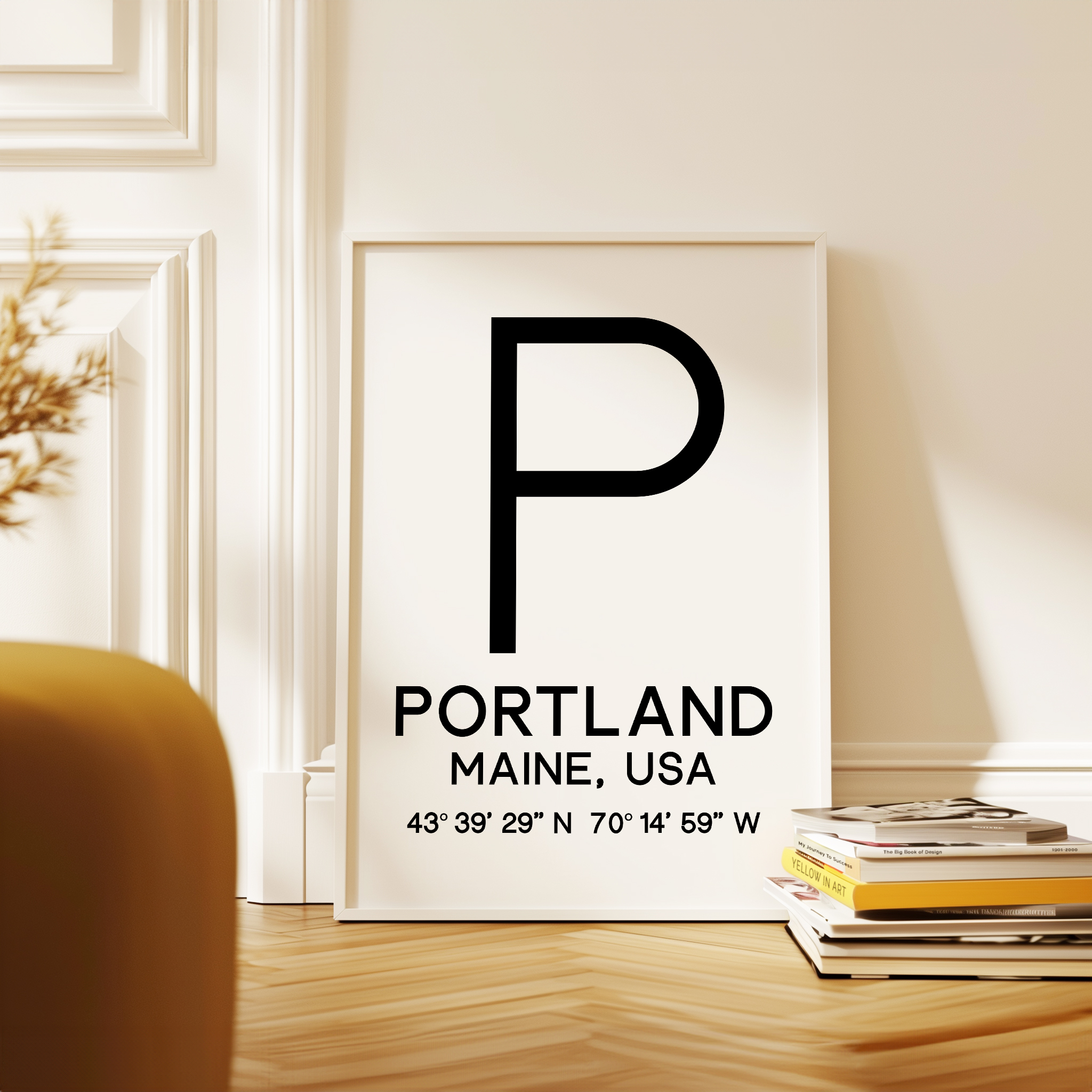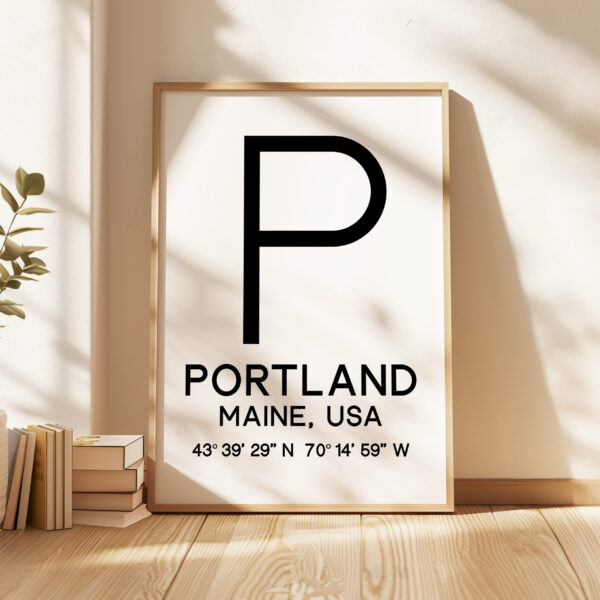 Bring the spirit of Portland, Maine into your home or office with this captivating Typographic Print. The clean, modern design showcases the iconic “P” logo alongside the city name and precise GPS coordinates, creating a striking visual that pays homage to this beloved coastal destination. This versatile piece makes a thoughtful addition to any space, serving as a constant reminder of the natural beauty, rich history, and vibrant culture of Portland. Whether displayed solo or as part of a gallery wall, this artwork offers a sophisticated, travel-inspired touch that celebrates the unique character of this Maine city.