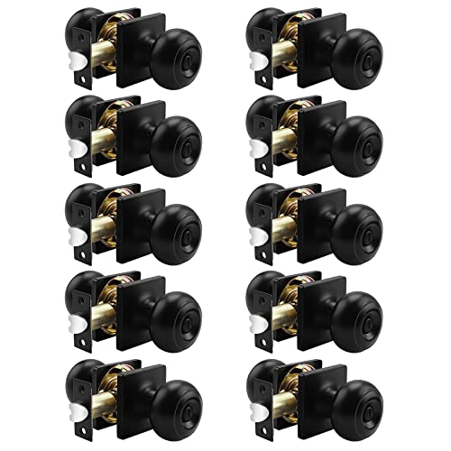 Probrico Colonial Privacy Door Knobs with Square Rosette, Black Interior Bath/Bed Door Locks, 10 Pack