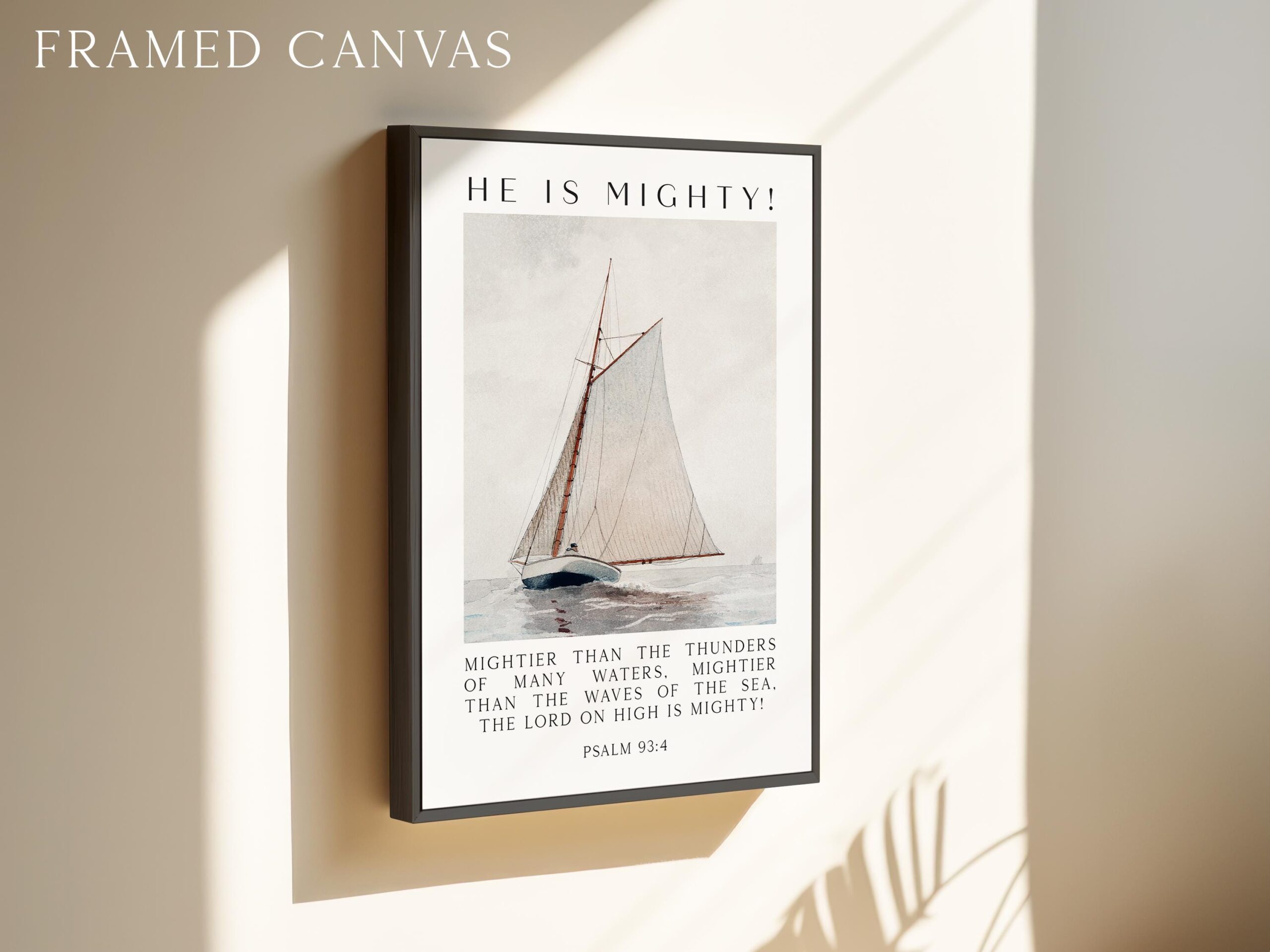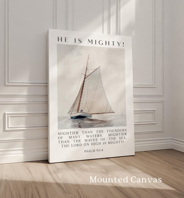 This Psalm 93:4 wall art print blends elegant typography with the painting, Sailing off Gloucester by Winslow Homer, symbolizing both the power of the sea and the greater power of God. Ideal for homes, churches, or study spaces, it’s a beautiful reminder of faith and strength.