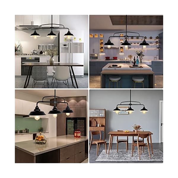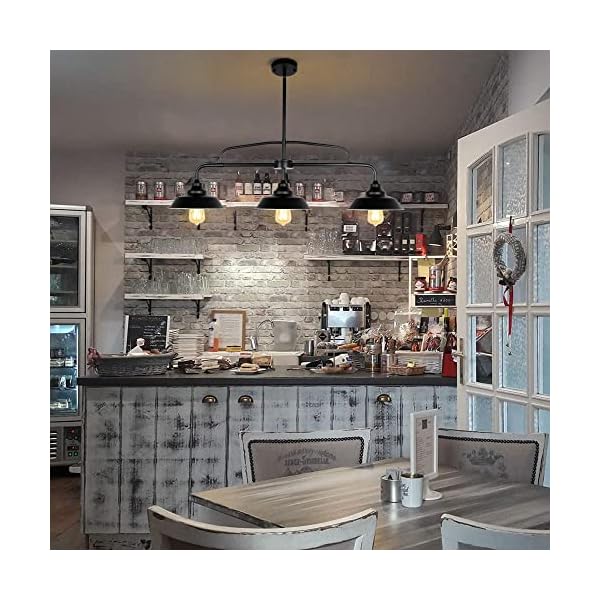 PUZHI HOME Black Pendant Lighting Fixture, 3-Lights Modern Farmhouse Chandelier with Metal Island Lights for Kitchen for Dining Room Hallway