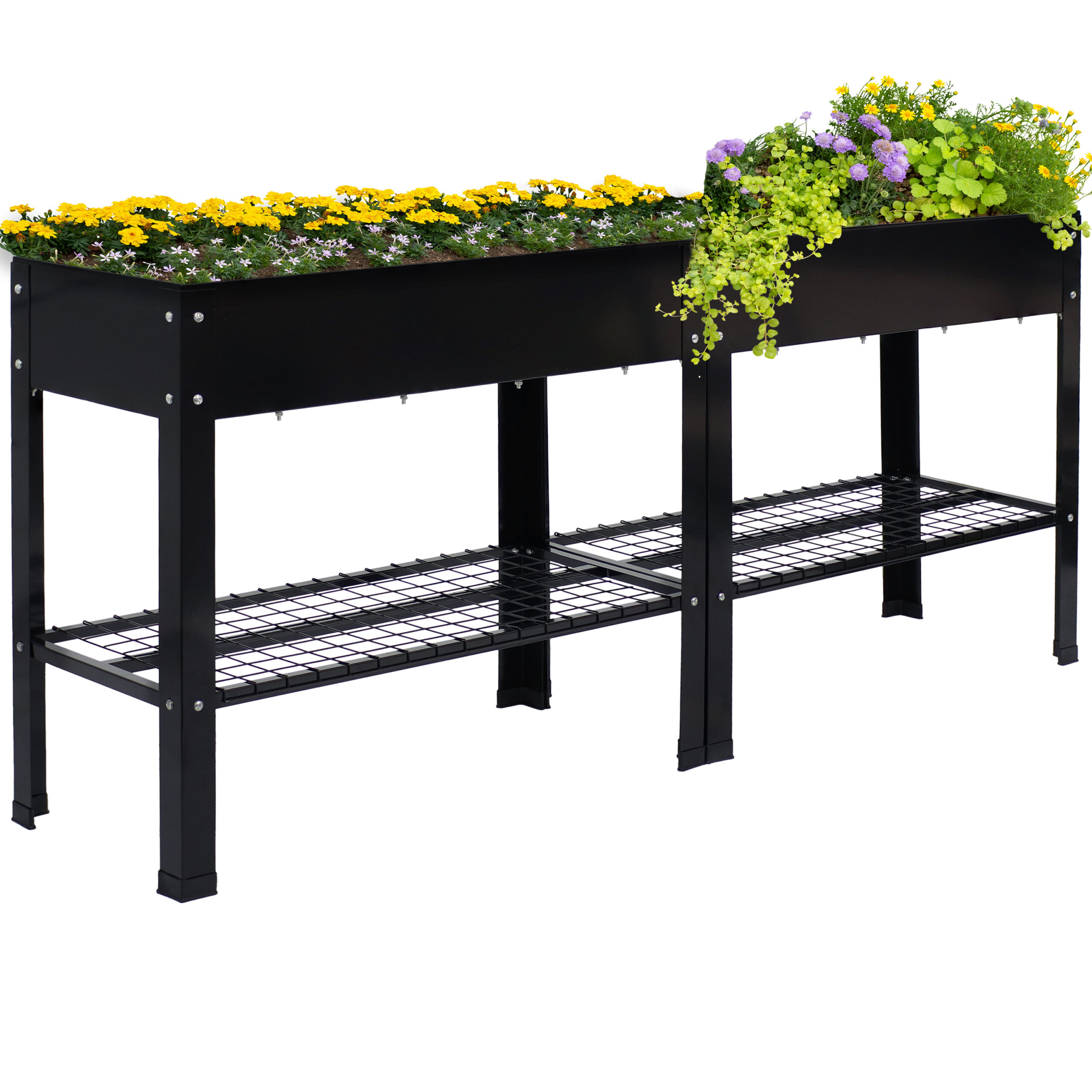 Make gardening simple with these stylish and durable raised garden beds. These versatile beds can either be used individually or joined together to create the perfect arrangement. Made of hot dip galvanized steel for lasting strength and beauty, each sturdy garden bed places your favorite plants at the perfect height so you can easily access them without bending or crouching. It features a classic finish to complement any decor as well as a convenient lower shelf for storing tools, gloves, and supplies.