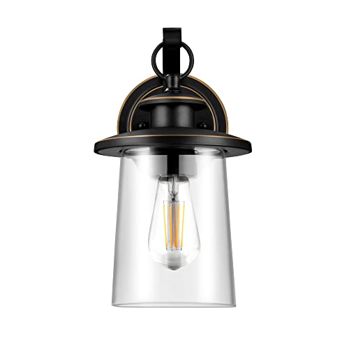 Revtronic 00393 1-Light Outdoor Wall Lights, Oil Rubbed Bronze, Exterior Light Fixtures with Clear Glass, Front Porch Lighting, Farmhouse Coastal Sconce Lantern for Outside, House, Garage, ETL Listed