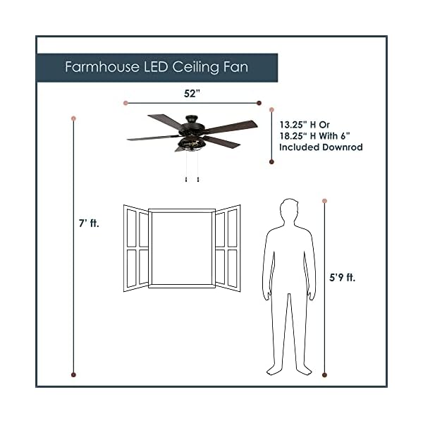 VERSATILE LIGHTING: Our ceiling fan fixture includes 2 dimmable LED E26 8W/40W incandescent bulbs, 5 reversible blades in wealthy barnwood / light driftwood, and 2 pull chains. It measures 52″ L x 52″ W x 13.25″ H and 18.25″ H with included 6″ downrod.