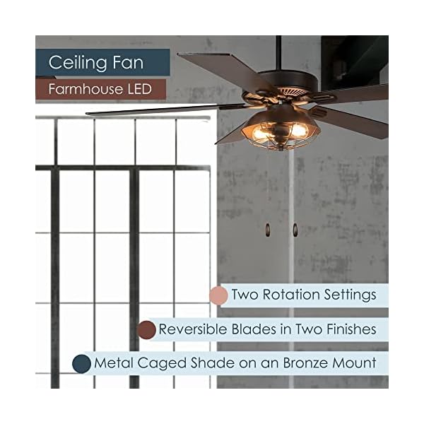 RIVER OF GOODS Farmhouse LED Ceiling Fan – 52″ L x 52″ W – Metal Caged Fixture – Rich Barnwood/Light Driftwood Fan Blades