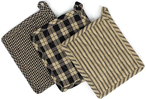 Each potholder is about 1/4 inch thick and made of 100% natural cotton, unlike those pot holders made of synthetic materials that will melt or burn when exposed to high heat.
