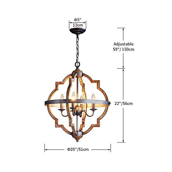 Saint Mossi 4-Lights Wooden Finish Farmhouse Chandelier Light Fixture,Rustic Globe Chandelier Style,Globe Pendant Light Farmhouse Pendant Light Fixtures,H22 x D20,Chain Adjustable