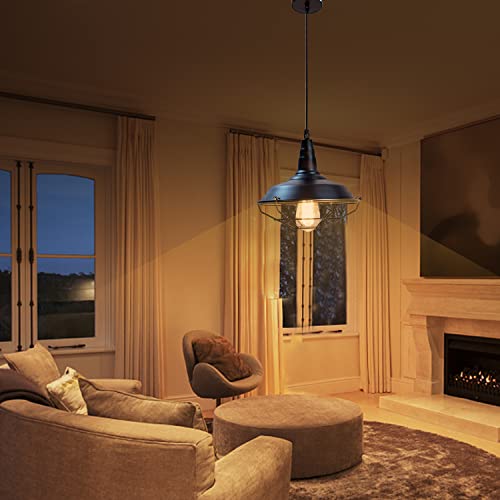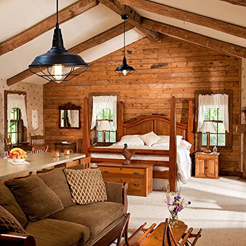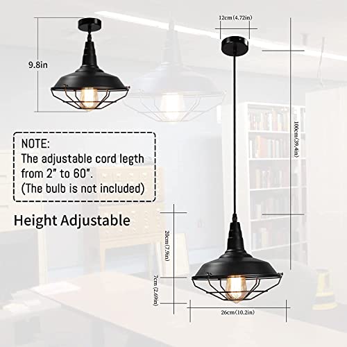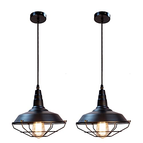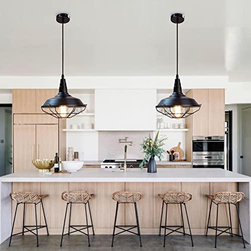 SaiPIS Farmhouse Pendant Light Fixtures, E26 Base Retro Pendant Lighting for Kitchen Island, Industrial Vintage Barn Hanging Lights with Adjustable Cord & Metal Cage(Black Set of Two)