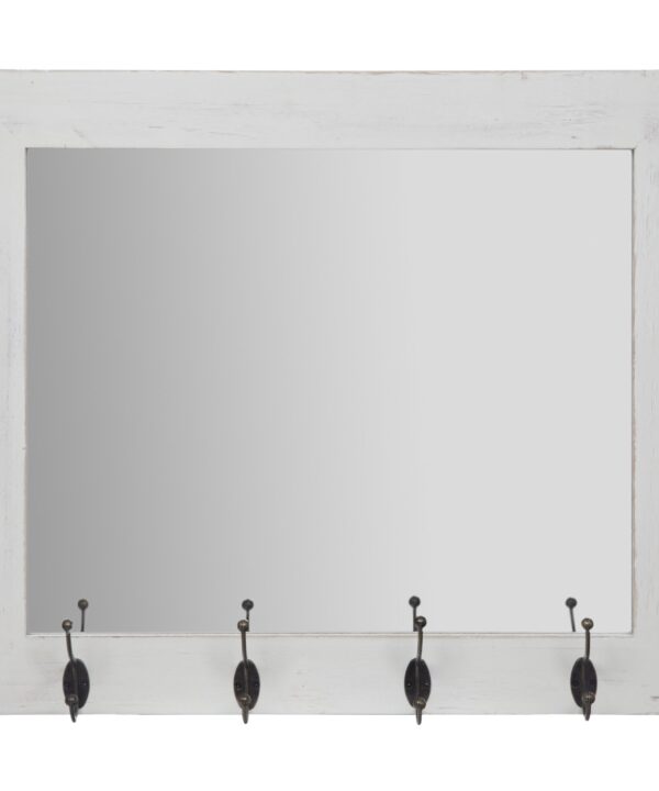 0Perfect sized mirror for our foyer.We love the addition of the hooks for small items that tend to be left by the door (hats, small purses, etc.)Adds enough charm to our front room to brighten up the space.Simple installation with screws in the wall but might consider alternative method to secure bottom of mirror to wall (command hook L-bracket) to ensure it won’t fall down.