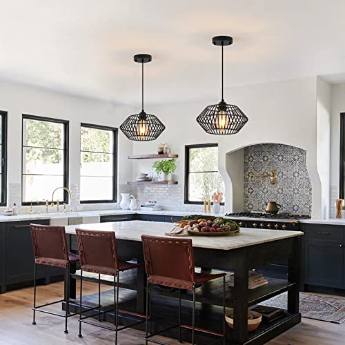 ????【Pendant Lights Kitchen Island 】 The sleek and minimalistic kitchen island light is composed of a matte black metal cage frame. offering a modern industrial look, very durable and well made. It is the perfect option for brightening indoor areas like the kitchen sink, dining room, living room, laundry room.