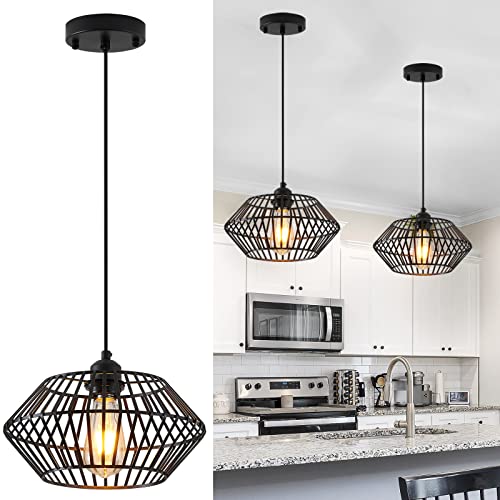 SGLfarmty Modern Black Pendant Light with Iron Cage, Industrial Pendant Light Fixture, Adjustable Metal Hanging Pendant Lights, Farmhouse Black Pendant Lighting for Kitchen Island, Sink, Hallway, Bar