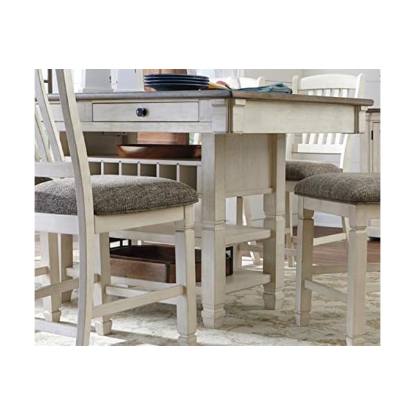 The beauty and practicality of this dining room counter table is something to savor. A two-tone textural finish gives this dining table with plank-effect top a double helping of charm. Four smooth-gliding drawers let you keep placemats, napkins and utensils right on hand. And if you love to entertain, you’re sure to toast this table’s built-in wine. A beautiful dining table will become every meal into a five-star experience. Dining tables bring families together—inspiring new recipes, feelings and flavors. You’ll be able to choose between a number of gorgeous materials to match your style, such as glass, wood or marble. With unmatched prices and quality, we’re your one-stop destination for furniture, home accents and decor.