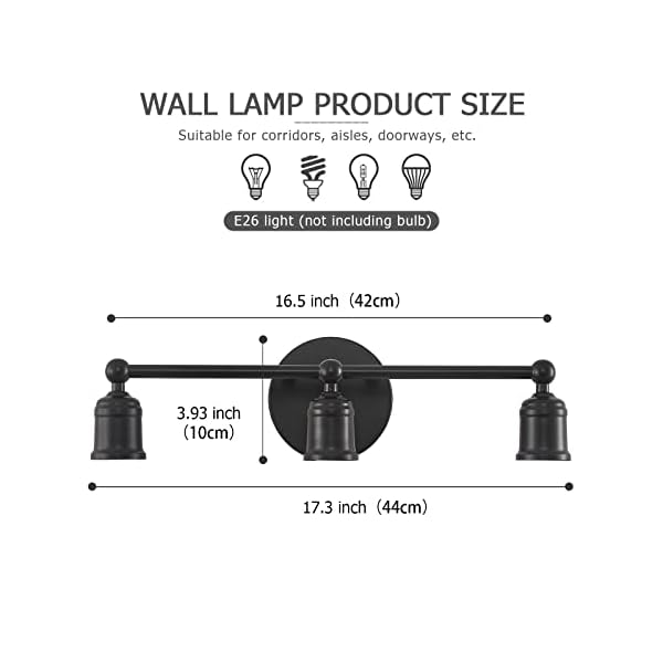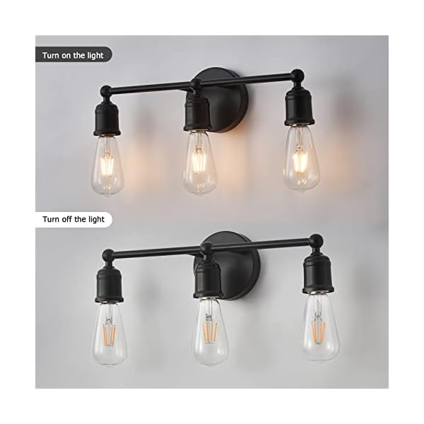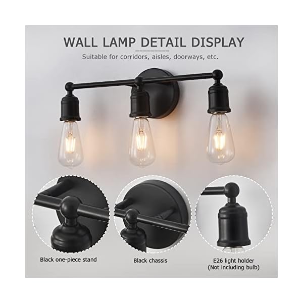stambord 3-Light Vanity Light Fixture, Industrial Bathroom Vanity Lights, Farmhouse Vanity Lights for Bathroom Over Mirror, Matte Black Sconce Wall Lighting for Bedroom Hallway