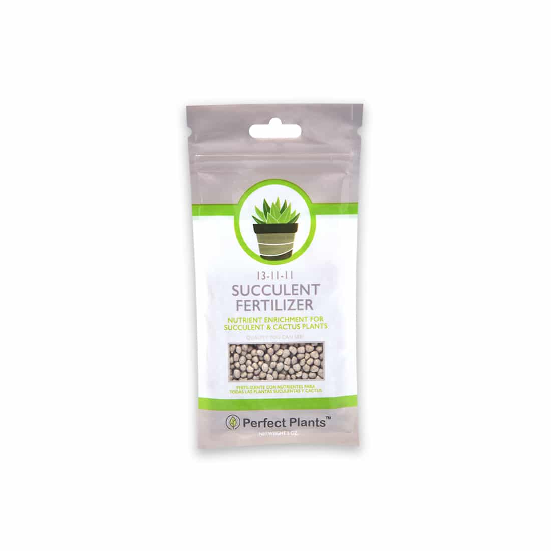 Highly Nutritious Slow Release Fertilizer Lasts for One Full Year Cactus and Succulent Fertilizer by Perfect Plants – All-purpose plant food for succulent and cactus plants. A special light rate formula with slow release fertilizer pellets that lasts for 6 full months that instantly feeds. Made for all succulent and cactus type plants. Will keep your plants growing healthy. This pellet based, balanced fertilizer is very different than liquid fertilizer that’s diluted. We believe it is the best fertilizer for succulents because it leaves less room for error. It is water soluble fertilizer and will dissolve over time. Be sure to apply the recommended amount: 1/4 tsp. pellets per 2-inch diameter pot size. Comes in a 5 oz resealable bag and has a low rate of 13-11-11. Meaning the NPK rate has higher nitrogen than phosphorous and potassium. INSTRUCTIONS FOR FERTILIZING SUCCULENT PLANTS: Easily apply fertilizer pellets on top of potting soil as a top dressing, distribute evenly, and water during first time use. You can also add to potting mixes. One time application that increases petal size, aids in succulent growth over a long time and increases color saturation. Fertilize your plants. Tips on growing your succulents: Growing indoor succulents is trickier but can be mastered. They require full sun and less cactus fertilizer than outdoor succulent plants. Plant growth will occur within a month and during the active growing season. Succulent plants and cacti experience the strongest growth during the spring and summer months. You don’t need to feed succulents during the colder winter months. Watering the plants during winter months drastically decreases too. Water your succulents more heavily in spring and summer. This is not an organic fertilizer but it is safer and better than chemical fertilizers from garden centers. Some cacti and succulent plants don’t need fertilizer. Do your research on your succulent varieties. Do not apply to air plants. Can be used on Christmas cactuses. Be sure to check out our Succulent Grow Guide for more information on planting and growing succulent plants. Don’t forget the Cactus and Succulent Potting Soil to pair with this