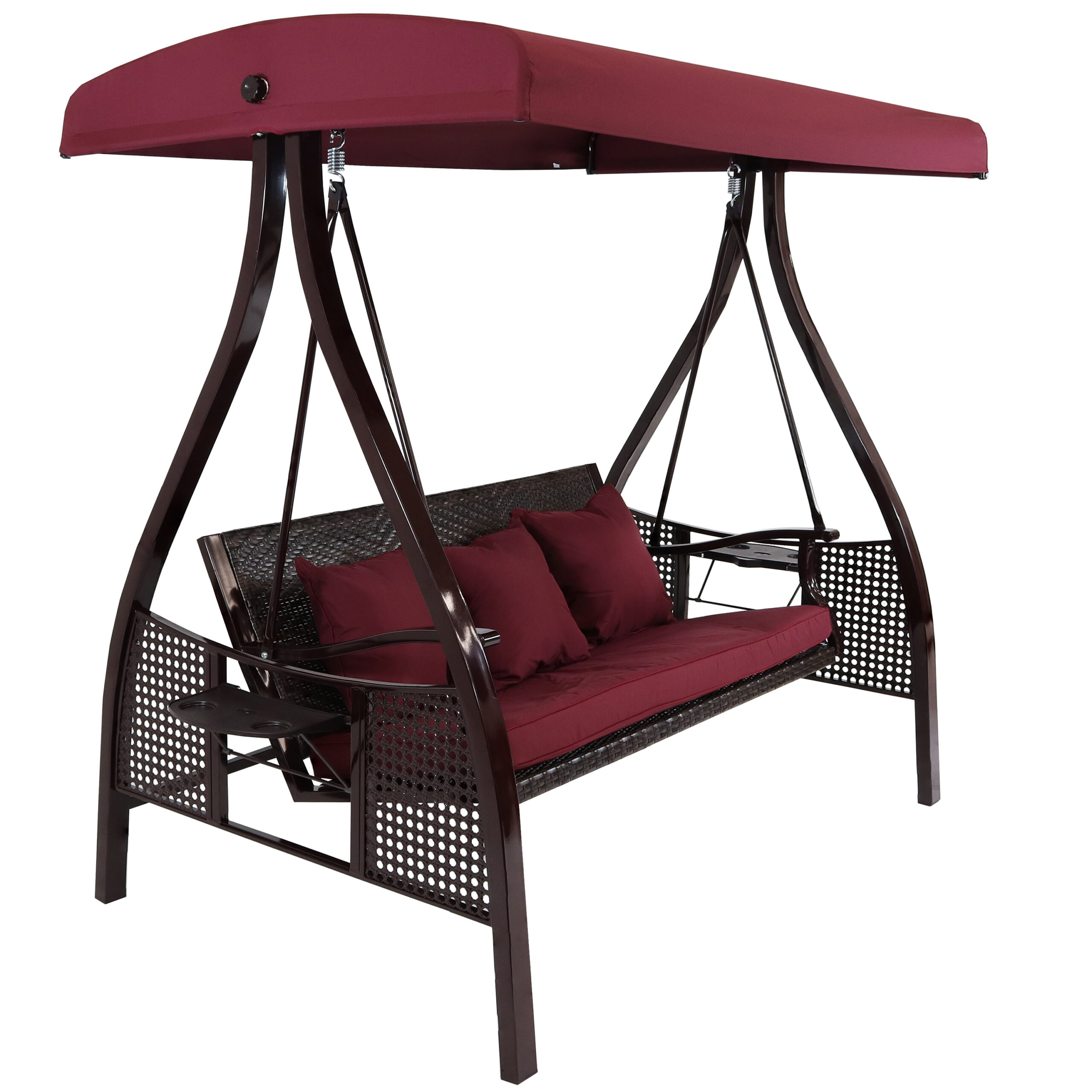 Sunnydaze 3-Person Steel Patio Swing with Side Tables and Canopy – Merlot
