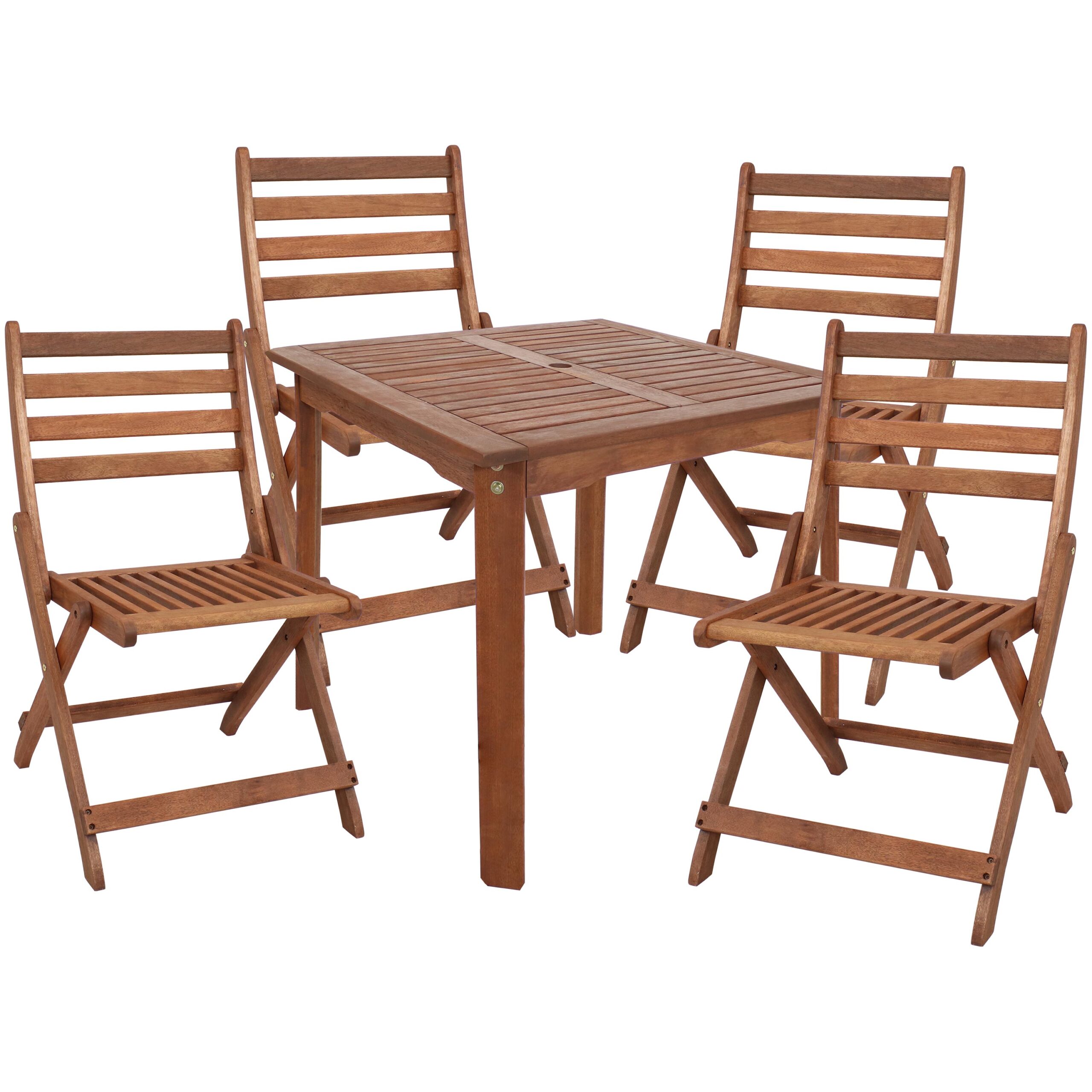 Sunnydaze 5-Piece Meranti Wood Square Dining Table with Folding Chairs