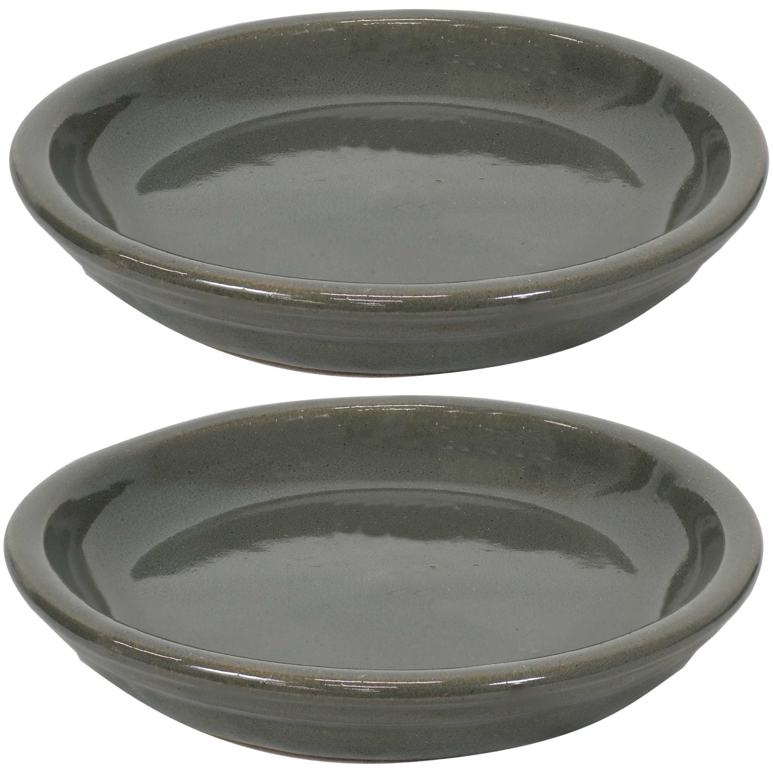 Sunnydaze Ceramic Planter Saucer – Gray – 7-Inch – Set of 2