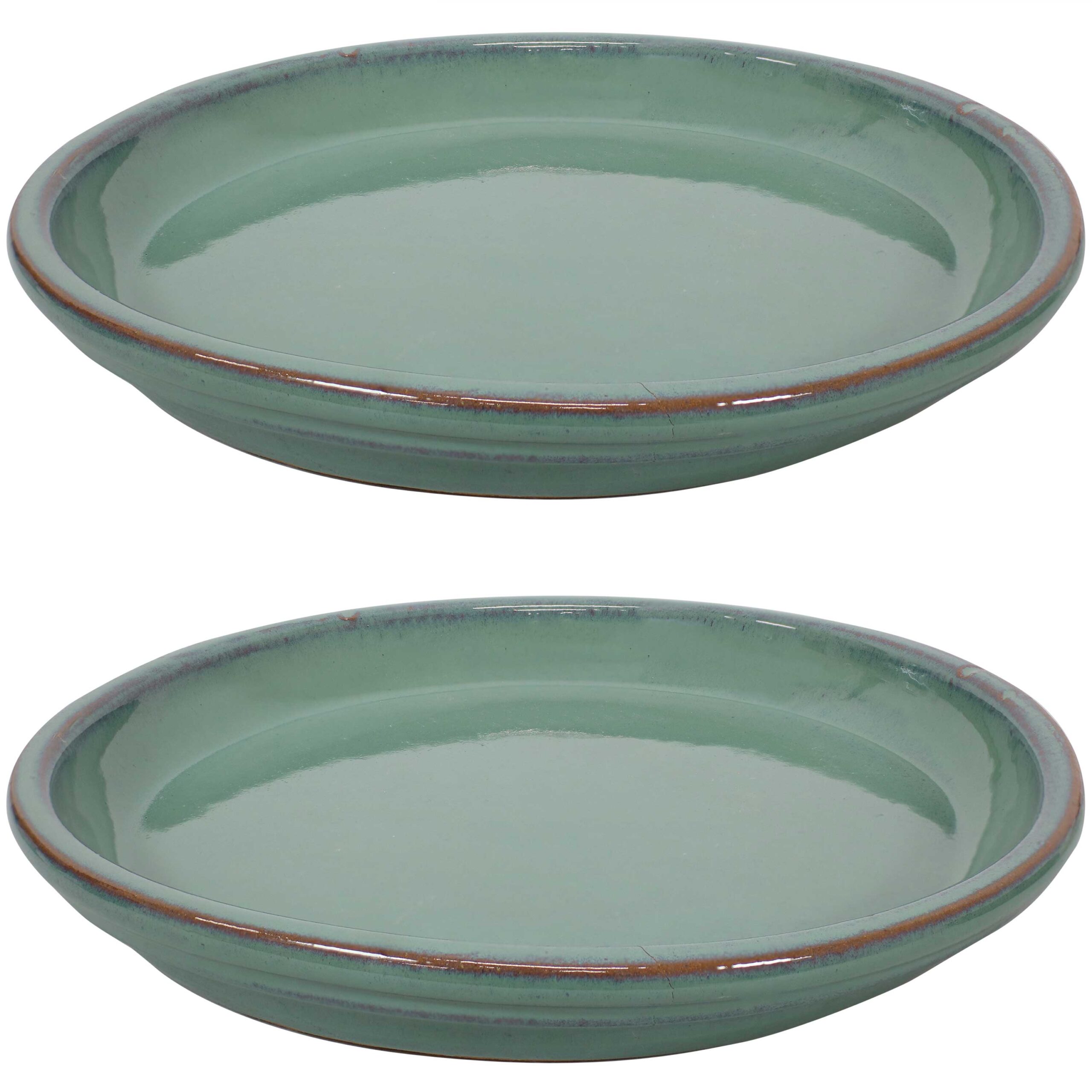 Sunnydaze Ceramic Planter Saucer – Seafoam – 12-Inch – Set of 2