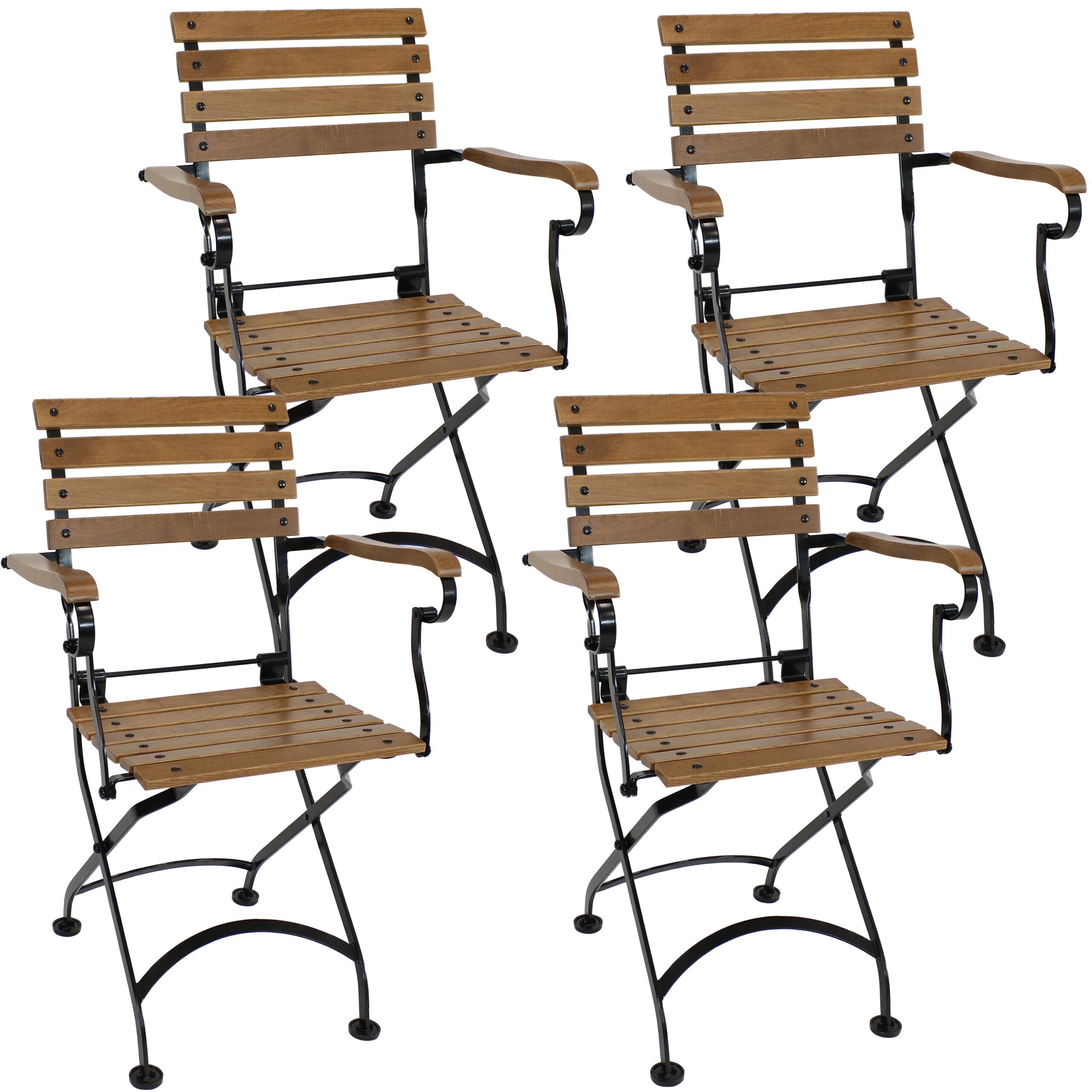 Sunnydaze Essential European Chestnut Wooden Folding Bistro Armchair – Set of 4