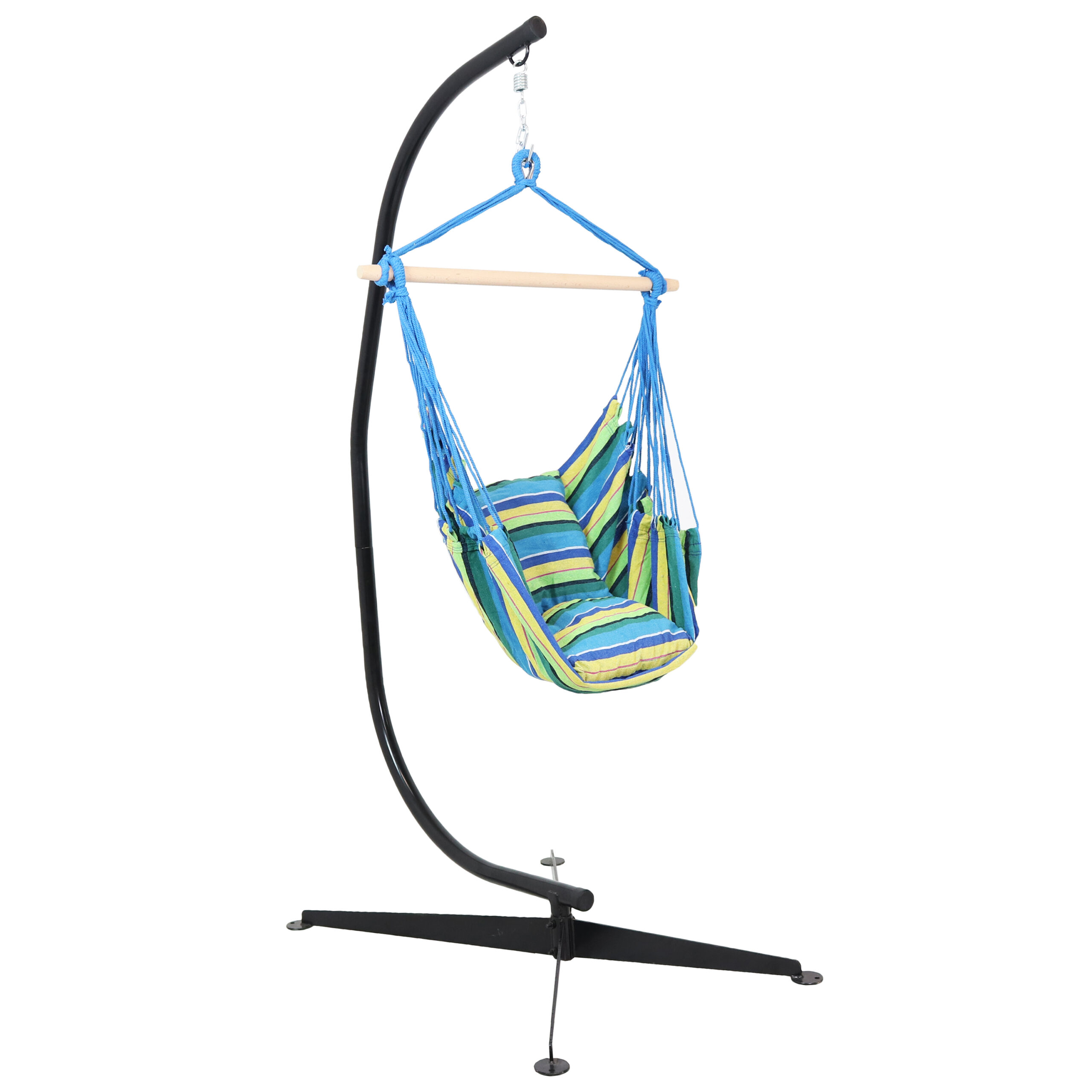Sunnydaze Hanging Hammock Chair Swing and C-Stand Set, for Outdoor Use, Max Weight: 265 pounds, Includes 2 Seat Cushions, Ocean Breeze