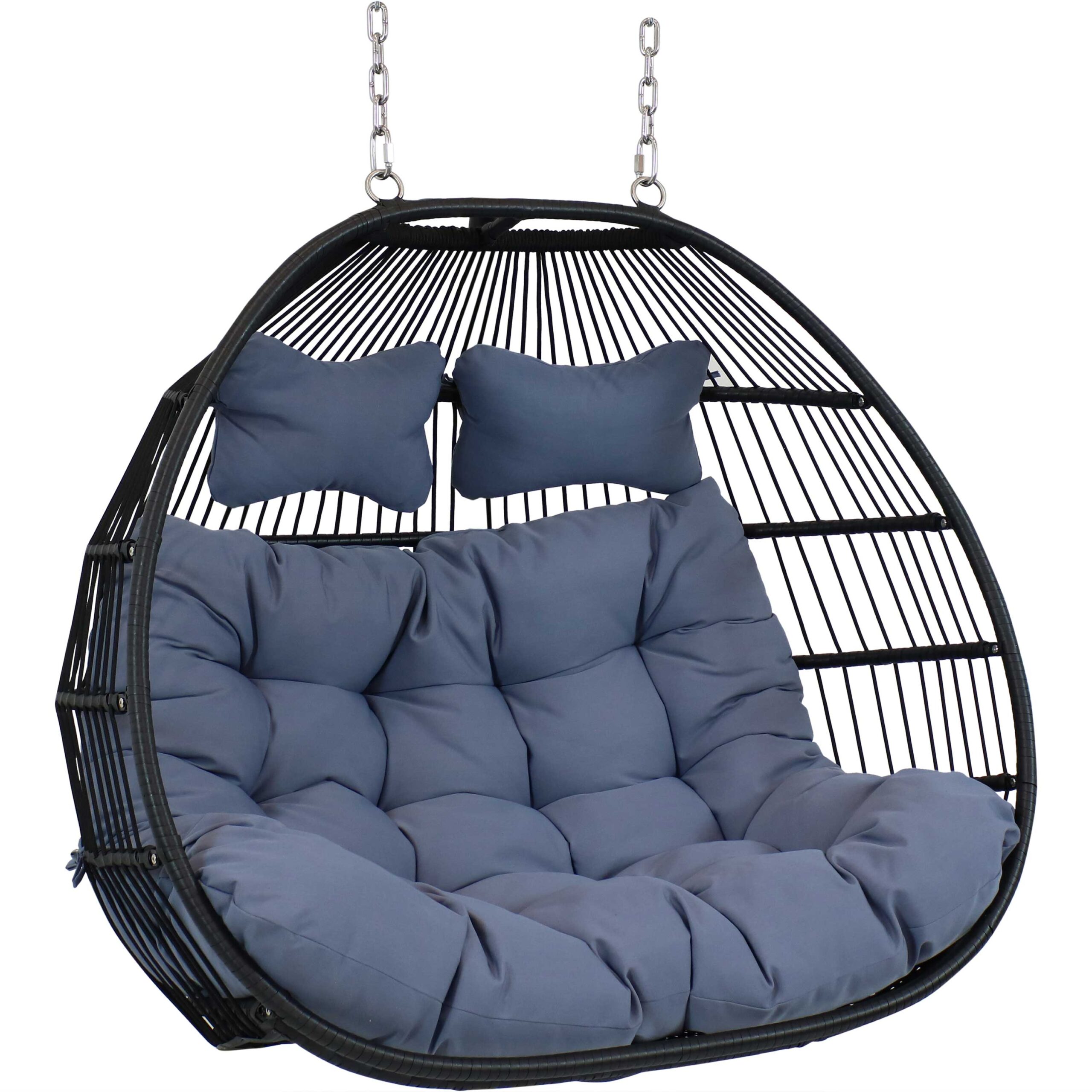 Sunnydaze Liza Loveseat Egg Chair with Cushions – Gray