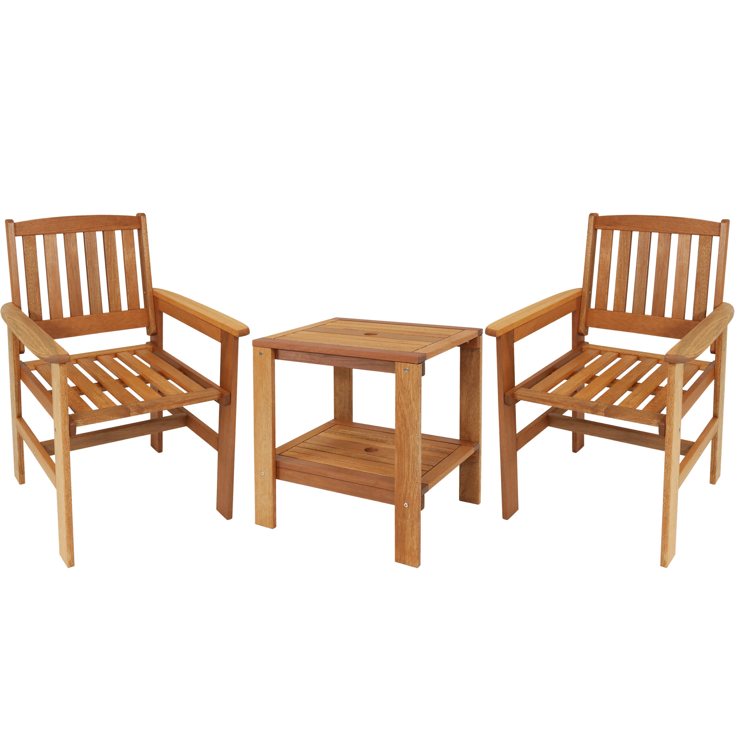 Sunnydaze Meranti Wood 3-Piece Outdoor Patio Conversation Set – Teak Oil Finish