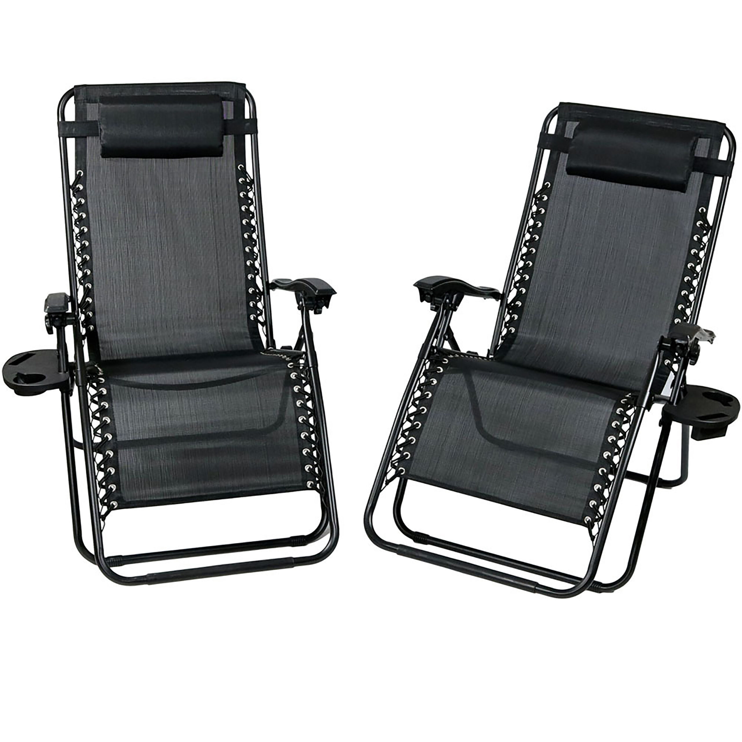 Sunnydaze Oversized Zero Gravity Chair with Pillow and Cup Holder, Charcoal, Set of Two