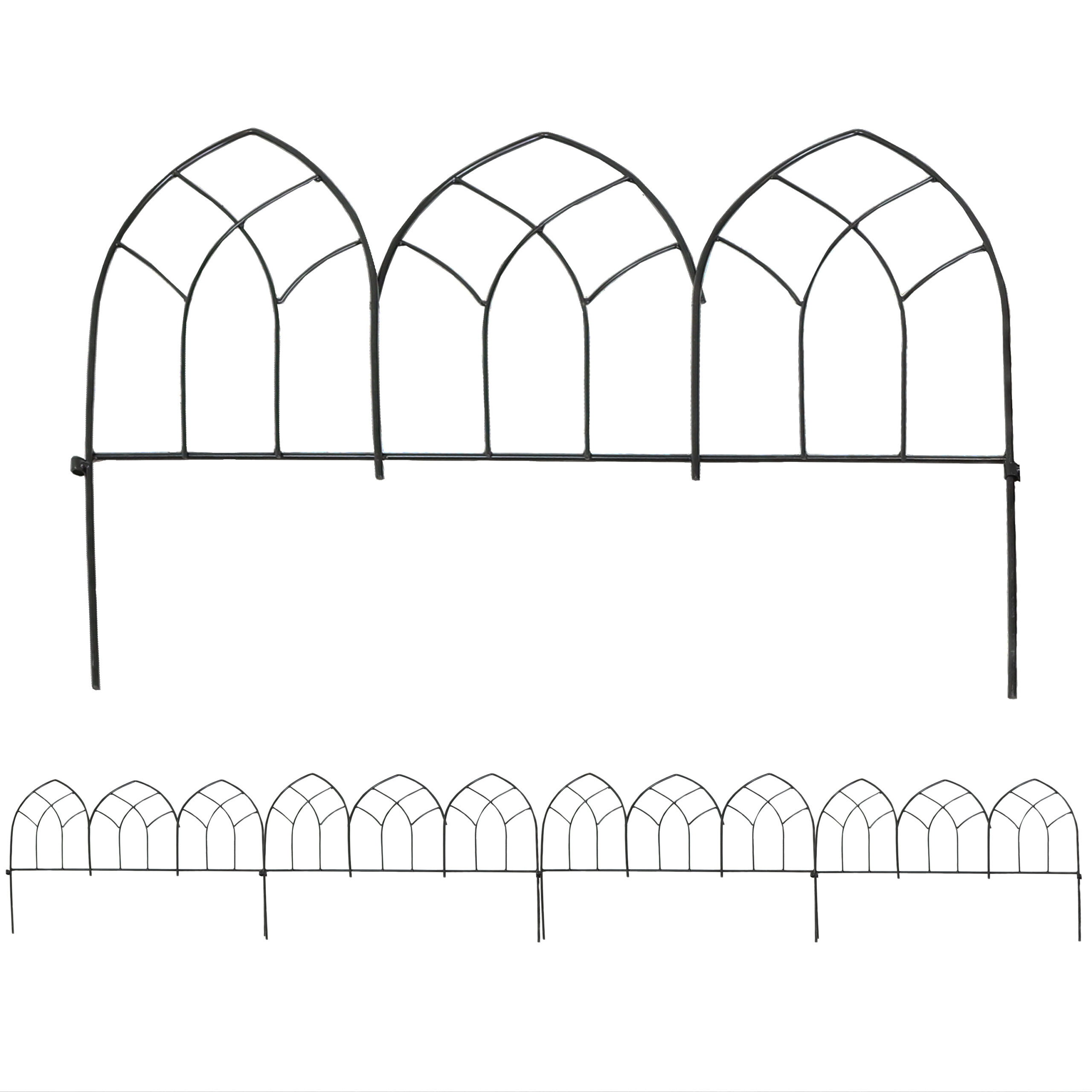 Add a charming, decorative touch to your outdoor space with this Narbonne-style metal garden fence panel set. Made from durable steel wire with a powder-coated finish, this garden border fence set will provide you years of beauty and performance. Each section has a hook on one end to connect to another section, which creates a complete border for a fence.