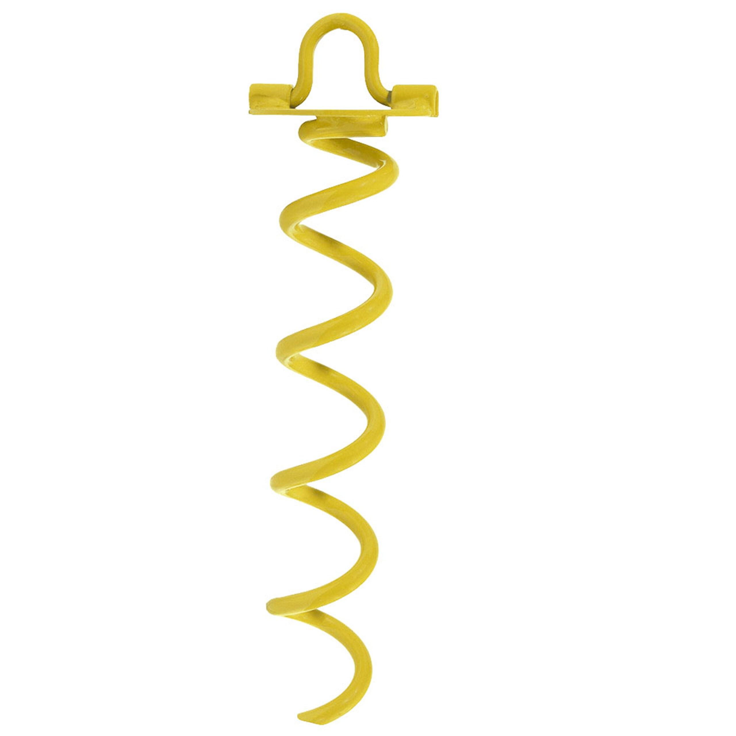Securely tie down your tarps, tents, and more with this durable spiral ground anchor. The cropped tip and spiral shape makes it easy to install into the ground and the folding ring on the top reduces the chance of someone tripping over it.