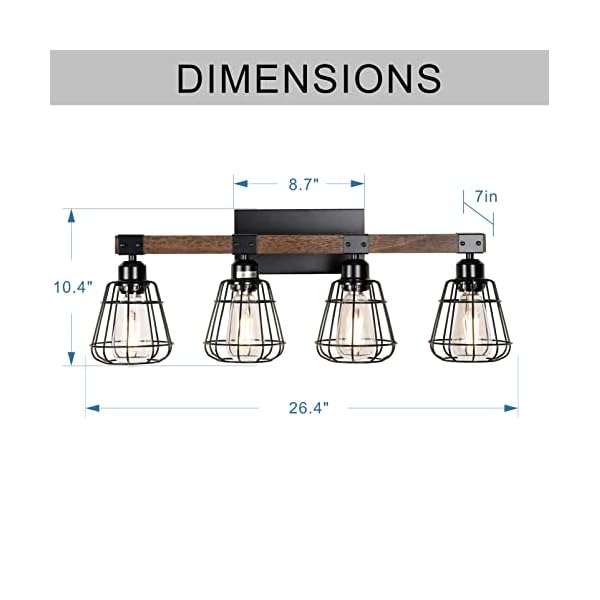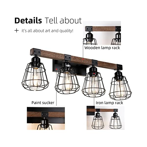 TELAFLY Bathroom Vanity Light Fixture,Rustic 4-Light Wood Wall Light,Industrial Bathroom Lighting Fixture Over Mirror,Modern Matte Black Metal Cage Wall Sconce for Hallway,Kitchen,Bedroom