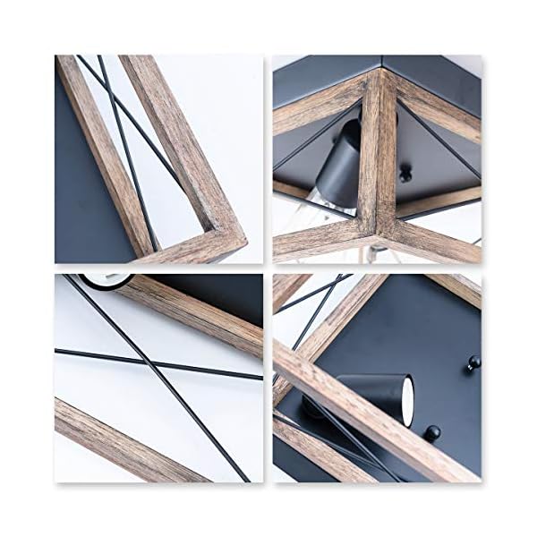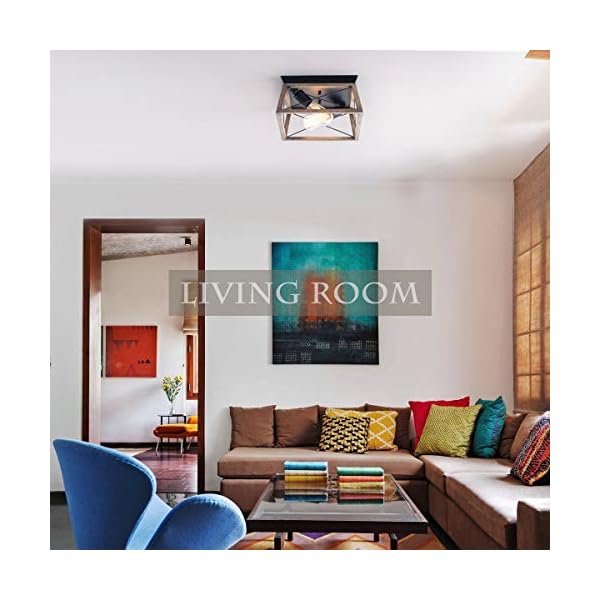 VILUXY Retro Industrial Rectangle Flush Mount Ceiling Light Fixture with Wood Shade for Hallway, Entryway, Passway, Dining Room, Bedroom, Balcony Living Room Two-Light