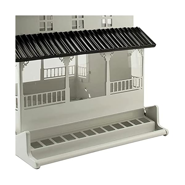 Prepare your backyard for flocks of wild birds. With the Heritage Farms Hanging Mount Backyard Farmhouse Squirrel Resistant Bird Feeder, get your backyard feeling like an aviary and celebrate your neighborhood’s birds. Don’t skimp on capacity when feeding nature’s finest. With this hanging ranch-style feeding trough bird feeder, make stronger more than one birds and fill your feeder with as much as 10.5 quarts of safflower seeds or peanuts splits. No matter which friendly faces pass through your out of doors spaces, this bird feeder is made to accommodate. This feeder is constructed of white steel frames designed in a 2-level farmhouse with black roofs, clear windows, porch rails, and column shapes. If squirrels or larger animals rest on these perches, the metal lid protects the seed openings and stops them from reaching the feed. This bird feeder has a powder-coated finish to offer protection to this feeder from elemental wear. To clean or refill this bird feed, you’ll be able to simply take away the roof for get entry to. Give the local birds a reason to discuss with your backyard and find an excellent seat to watch them eat with the Heritage Farms Hanging Mount Backyard Farmhouse Squirrel Resistant Bird Feeder.