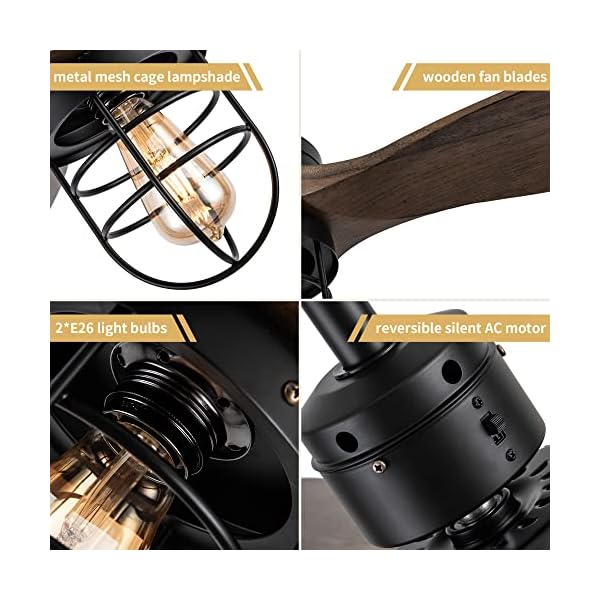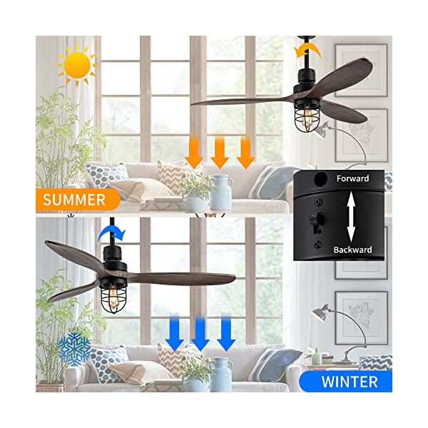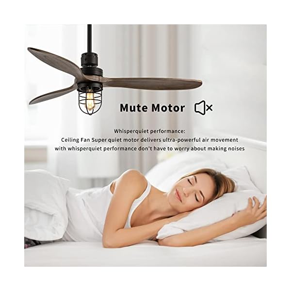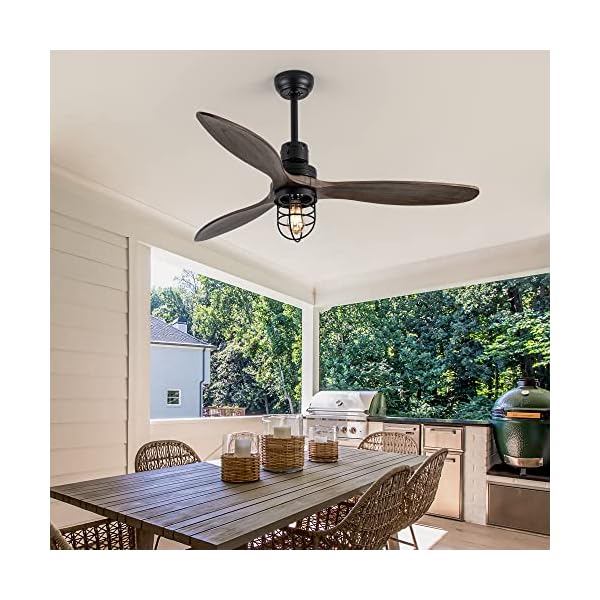 WWM 52 Inch Rustic Outdoor Ceiling Fan with Light and Remote, 3 Wood Blades, Include Bulbs, Modern Black Farmhouse Industrial Ceiling Fan with Light for Outdoor Ceiling Fans for Patios Bedroom