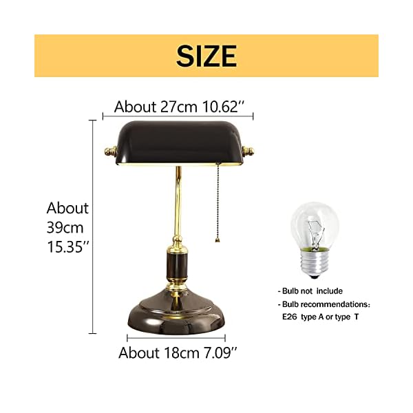 Yeefamons Traditional Bankers Lamp, Black lamp Shade,with Pull Chain Switch Plug in Fixture,Vintage Office Table Light, Antique Style Desk Lamps for Office, Library…