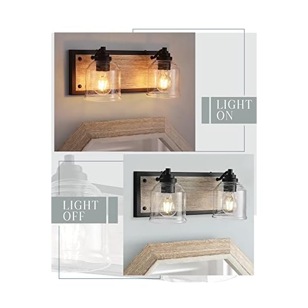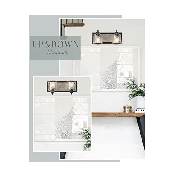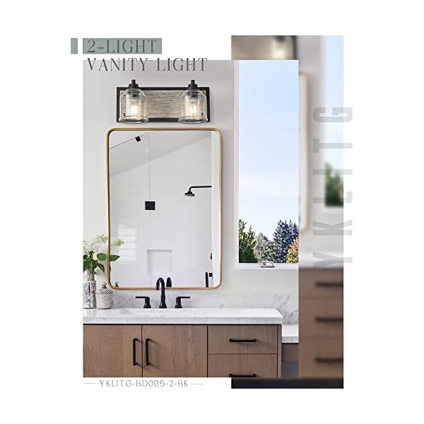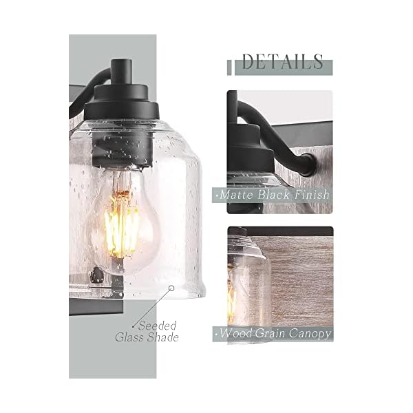 YKLITG Bathroom Vanity Light Fixtures, 2-Light Black Vanity Light with Seeded Glass Shades, Rustic Farmhouse Vanity Light Fixtures, BD005-2-BK