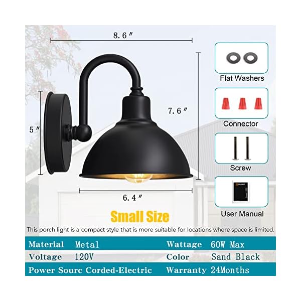 Ytzlvw Outdoor Gooseneck Barn Light Fixture, Small and Exquisite, Classic Farmhouse Porch Light with E26 Bulbs, for Patio Garage Front Door. 6.4″ Caliber